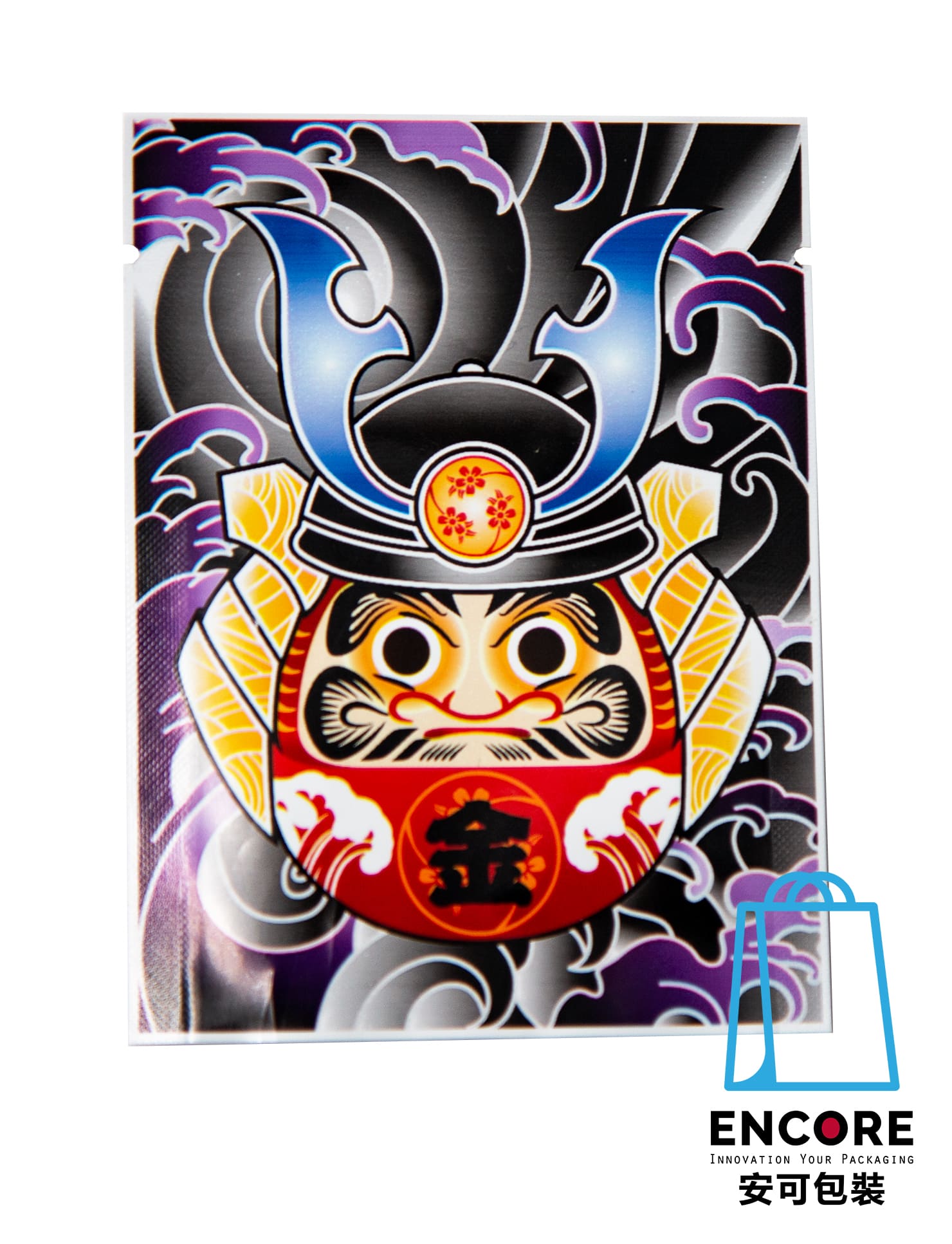 鋁箔三封袋 1.複合式材料所製作而成 2.可為三種材料或三種以上材料貼合而成,中間材的Al可有效的阻隔空氣與水氣 3.印刷呈現優於傳統製袋做法 4.封口寬度較寬,強度較強